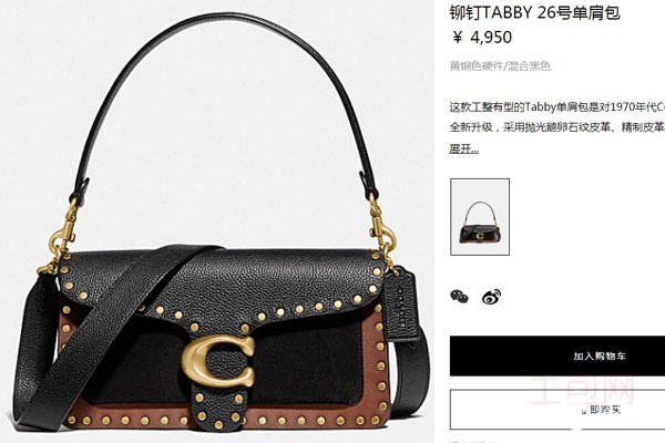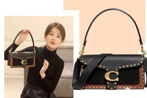 上图为乔欣同款棕黑拼色的铆钉款tabby包包官网价格