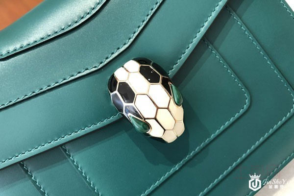 上图为宝格丽祖母绿蛇头包包外观展示