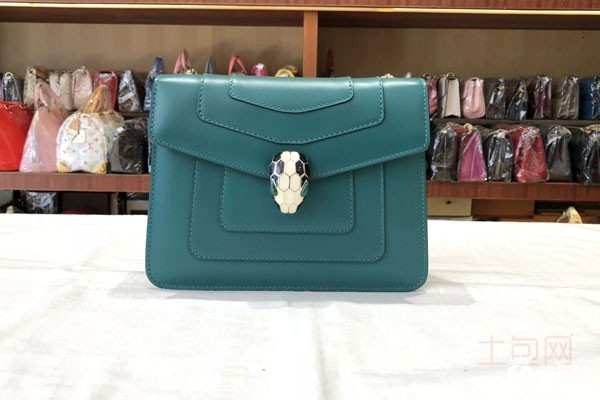 上图为9成新的宝格丽祖母绿蛇头包包外观展示