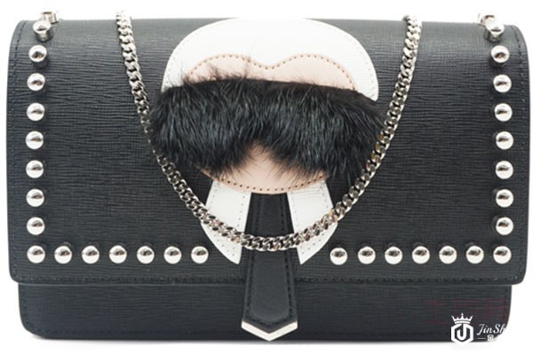 上图为芬迪黑色牛皮十字纹老佛爷单肩包