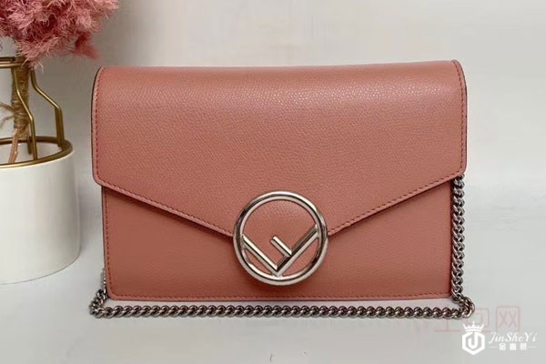 图为芬迪粉色牛皮单肩包