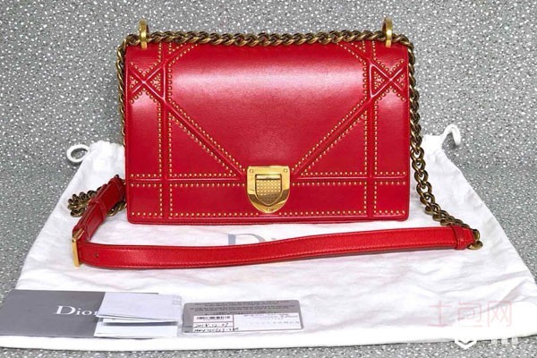 上图为大红色迪奥Diorama铆钉包包