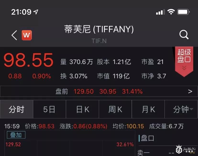 受上述消息影响,蒂芙尼28日美股盘前涨超30%。