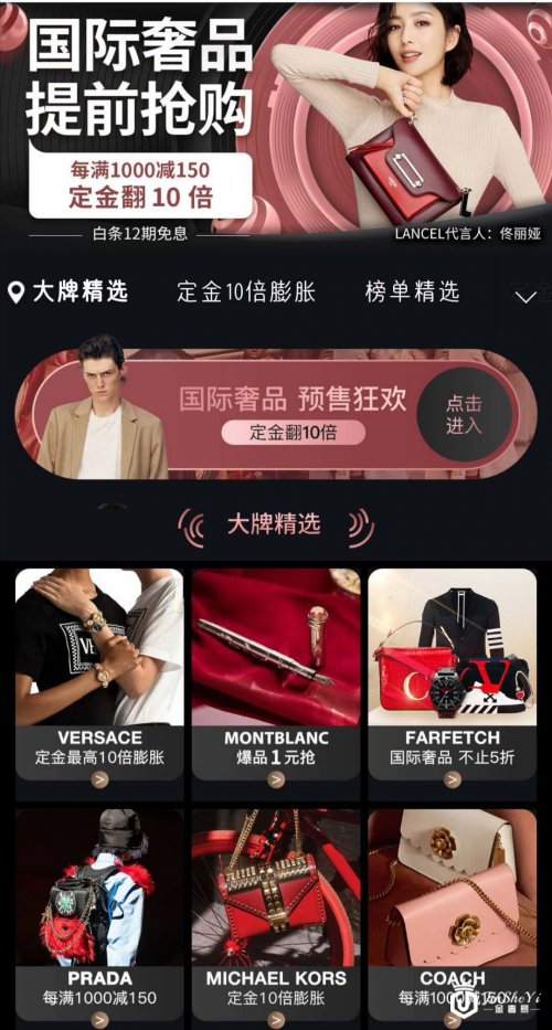 小编抱着期待的心情,上京东奢品馆看了一眼,PRADA,VERSACE,MONTBLANC,LA PERLA等大牌比比皆是,定金10倍膨胀不在话下,更有甚者,像是FENDI,直接推出了定金最高30倍膨胀。小编随便点进去,选了一款,定金100抵3000,近万元的包包几千块就能下!