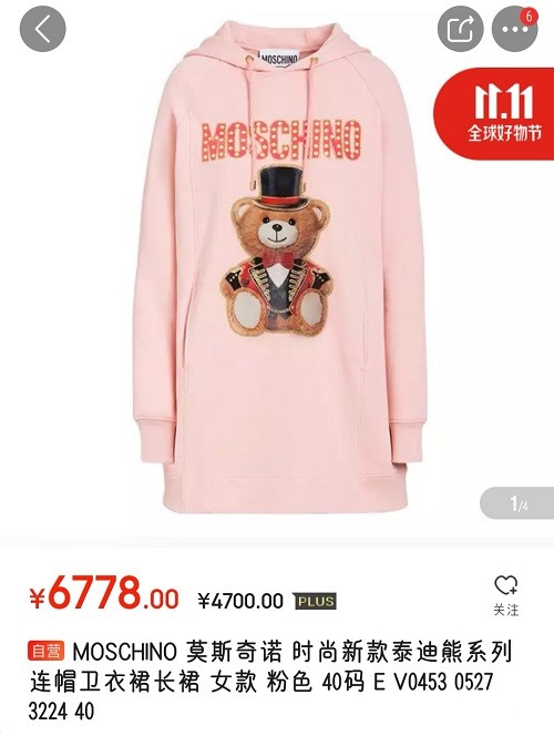 除了定金翻倍,还有满1000减150和白条 12期免息等活动,而且很多都是同步的哦!比如这件MOSCHINO新款泰迪熊系列连帽卫衣裙,原价6778元,如果你是京东PLUS会员专享价后再打95折,再加上满1200减150等活动,到手价也就3000多,还可以同步享受白条12期免息! 是不是很心动?