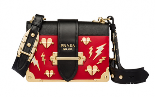还有这款,大名鼎鼎的PRADA,金字塔顶尖的奢侈品品牌!经典的Cahier系列,今年七夕的限量版本,有钱都不一定能买到的款式!竟然在京东找到了!红黑拼色小牛皮,搭配立体金属心形图案,背上它你就是女王!除了Prada,Miu Miu和Car Shoe也在618期间同步入驻京东了!产品与品牌全球产品动态步调一致,同步上新,所以以后大家足不出户也能买到那些新款,走秀款了,而且全部是正品行货!给京东点赞!