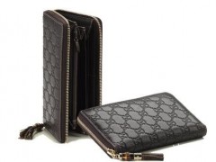 真品Gucci做工精细,不管是花纹的织法还是车线、内层都非常工整干净。假Gucci的做工就没那么多考究了。要特别注意的是只要是有双G花纹的都在仿冒业者的范围内,真品Gucci的双G LOGO花纹织法非常整齐,两个大写字母G的图案十分清晰。正面的LOGO多数都是6针到7针,且钱包两面的针数是对称的。假Gucci的双G LOGO花纹看上去并不是清晰的大写字母G,而像C。所以要仔细观察G花纹的织法是否整齐、所有车线是不是工整、收尾是不是干净、内层的皮革折叠处或切割线是不是平整,这些都是假货穿帮的地方。