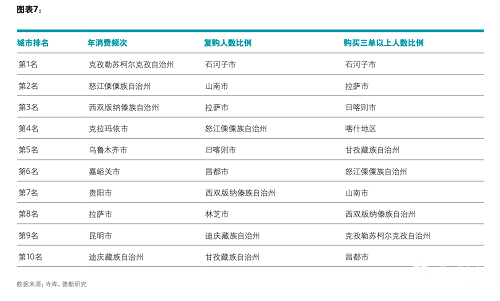 与此同时,三线及以下城市呈现强劲的购买力。以寺库平台2018年9月-2019年9月的数据为例,按照全年消费频次排名,前30名城市中有27个城市,约90%为三线及以下城市;按照复购人数比例排名,前30名城市中29个城市为三线及以下城市;按照三单以上人数比例排名,前30名城市均为三线及以下城市。