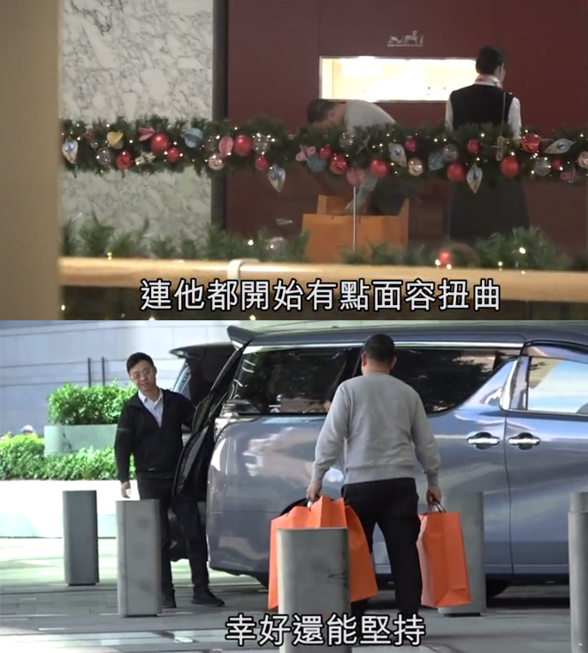15分钟后,保镖快步返回店内,又拎了三大袋的购物袋出来,购物袋大,里边的商品又十分昂贵,保镖拎起来明显有些手忙脚乱。