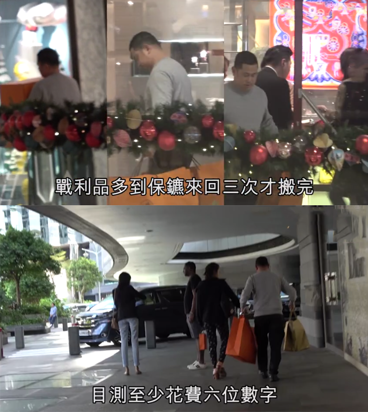 甘比此次疯狂购买奢侈包,保镖三次折返运送战利品,一共一个大礼盒,四大袋的商品,估计都是包包居多,以此品牌手袋近10万起底的标价,估计她此次的消费金额高达六位数。
