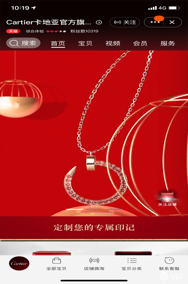 卡地亚官方旗舰店为了天猫消费者更便捷的在线金融支付,旗舰店所有商品都支持花呗分期服务,此外,卡地亚天猫官方旗舰店应用了全新的旗舰店2.0模型,首次实现作品、红盒、礼品卡三种不同刻字服务,将顶级奢侈品牌深度高级定制服务带到线上,天猫奢品也将运用阿里巴巴商业操作系统,持续助力卡地亚的数字化升级战略。