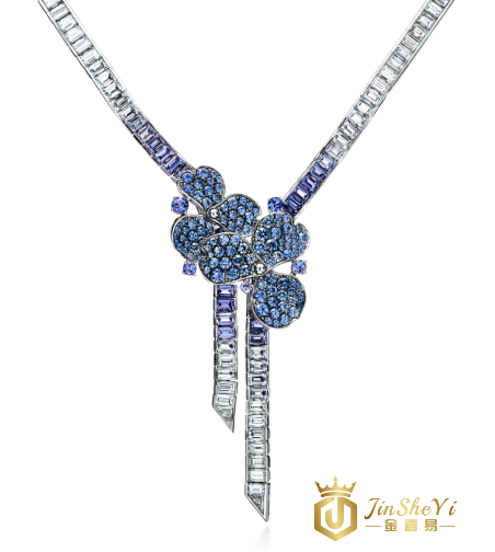 Tiffany & Co. 蒂芙尼Paper Flowers™花韵高级珠宝系列铂金镶嵌坦桑石及钻石项链