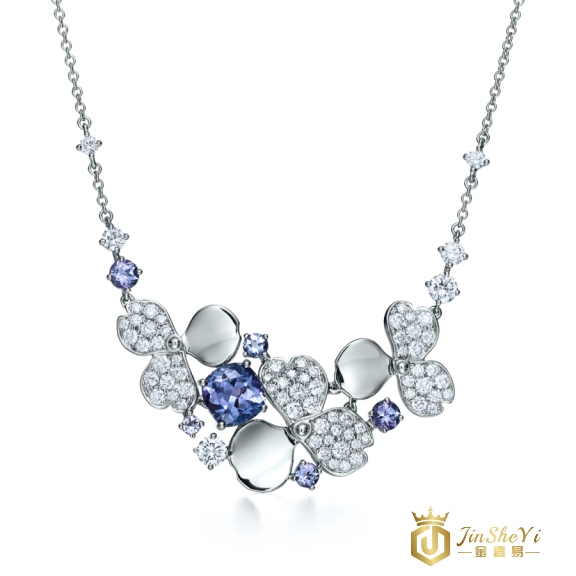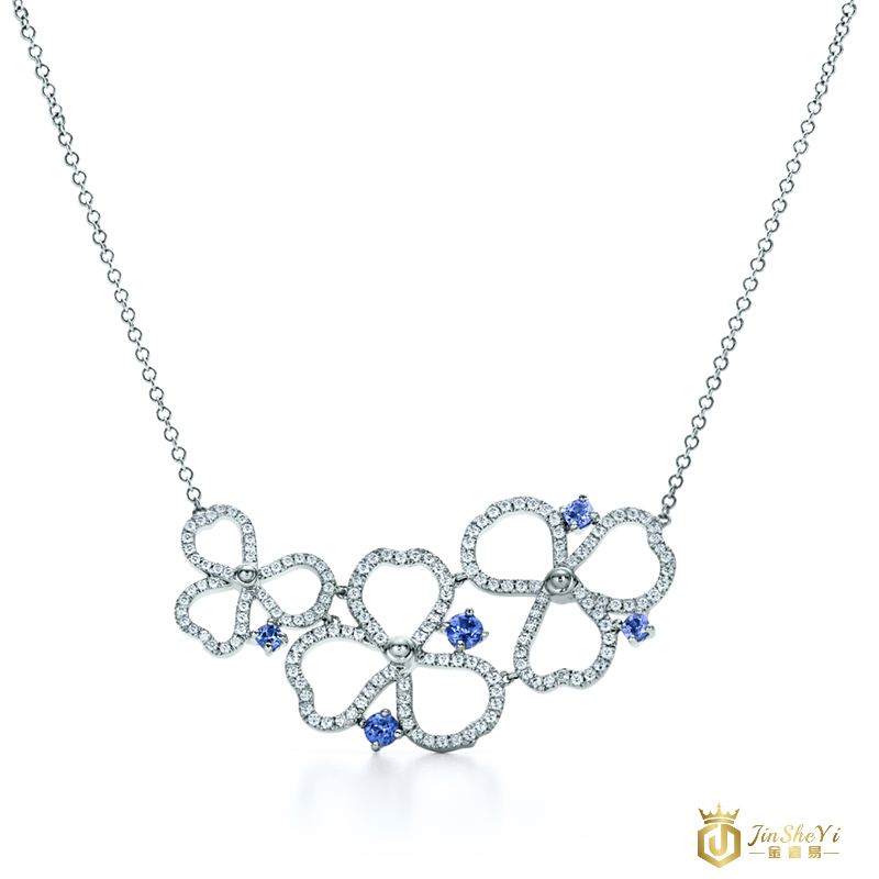 Tiffany & Co. 蒂芙尼Paper Flowers™花韵系列铂金镶嵌坦桑石及钻石项链