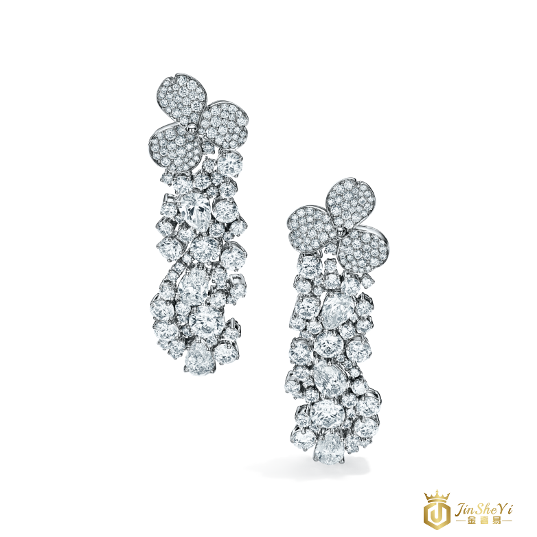 Tiffany & Co. 蒂芙尼Paper Flowers™花韵高级珠宝系列铂金镶嵌钻石耳坠