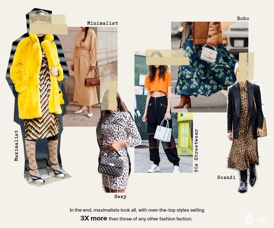 过去十年里,时尚潮流缤纷多彩,比如性感风、90年代街头风、极简主义风、BOHO风等等,然而这些风格都比不上极繁主义风格,后者的销售额是其他风格的三倍多。