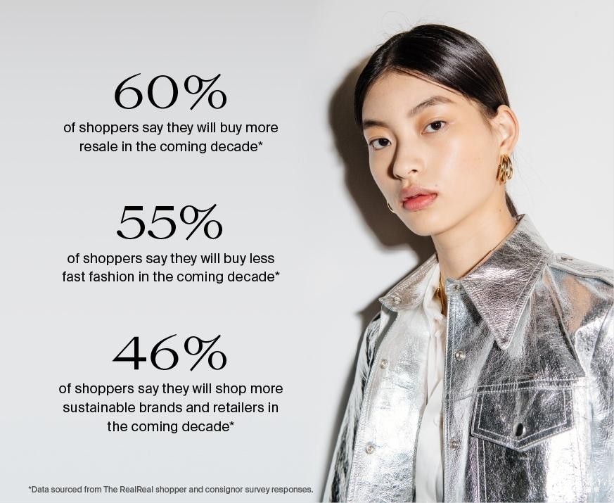 根据The RealReal的调查,60%的顾客表示未来十年会购买更多二手产品;55%的顾客表示会减少购买快时尚产品;46%的顾客表示会选择更多可持续品牌和零售商。