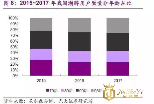 与80后的消费概念不同,90后和00后从小接受了大量前卫文化艺术的教育,更贴近时尚潮流的取向。尼尔森数据显示,90后和95后已经成为潮牌的主要消费群体,占比超50%。