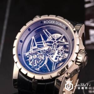 说起罗杰杜彼这块手表比较前卫,在很多材质上都借鉴于汽车,比如兰博基尼汽车。达成合作联盟推出了不少合作腕表,其中一款绿色荧光配色的腕表,这款手表在外表上打上了车的logo,而且是运用了真正操盘的材质,所以这个手表对于很多超跑车爱好者有非常高的吸引力。