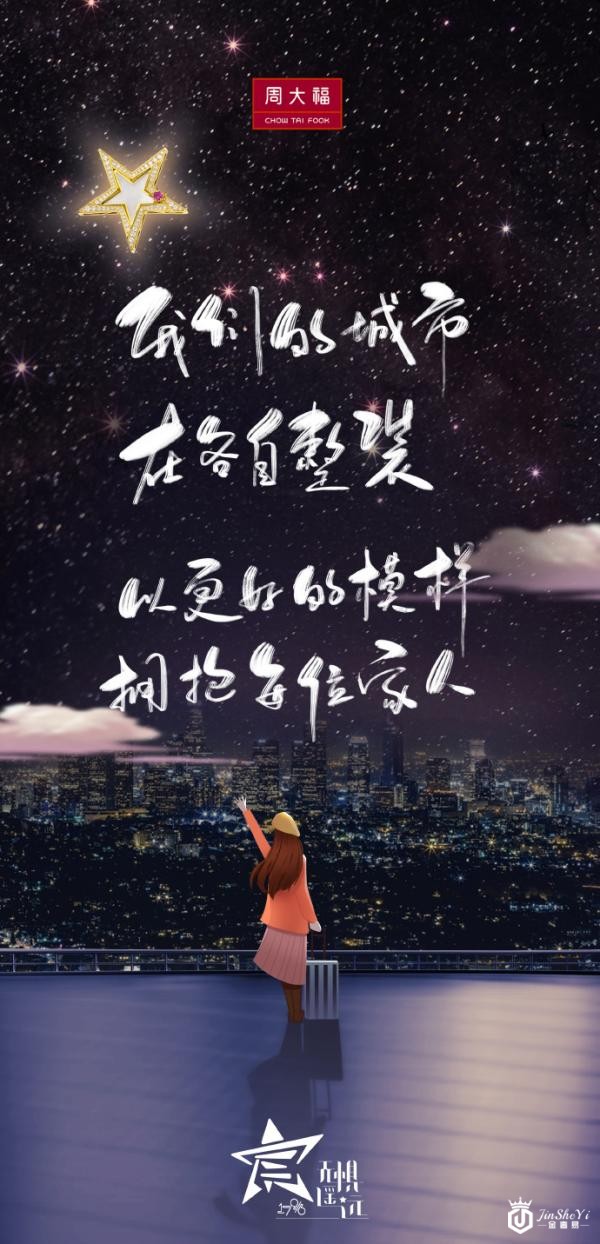 周大福为此次疫情捐款100万元,并在微博发布加油海报。