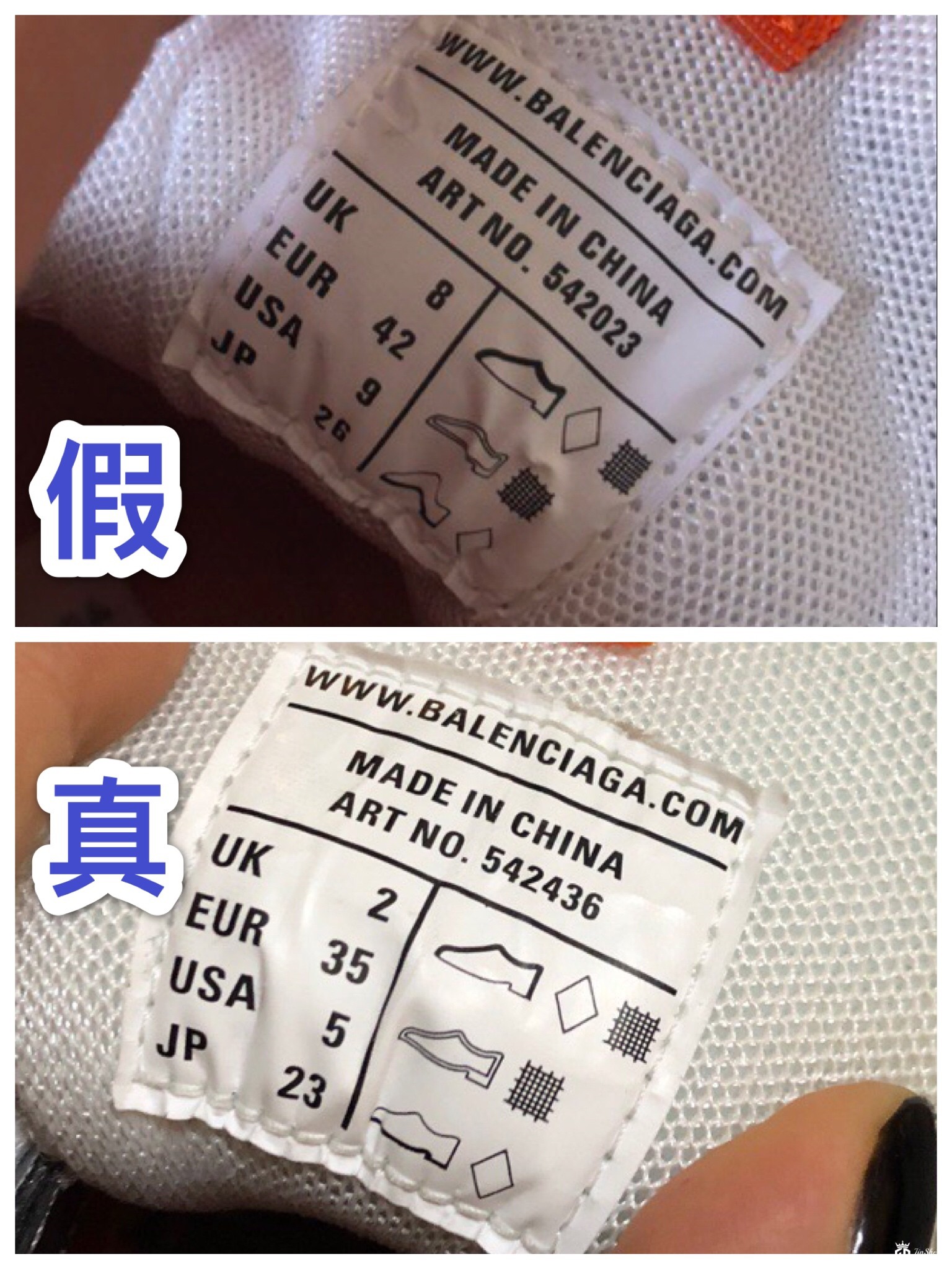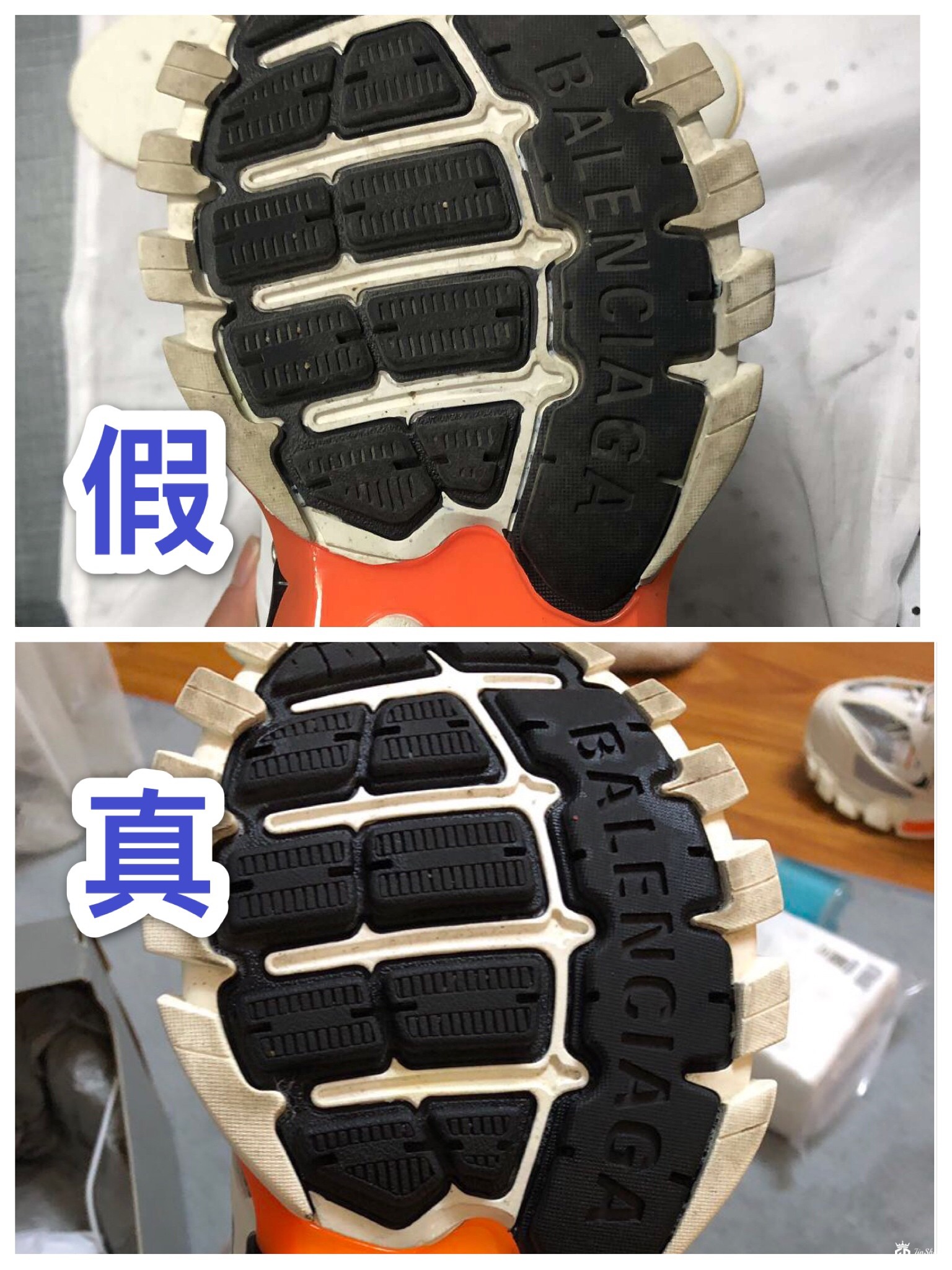 鞋底中的Balenciaga的形态也是可以作为鉴别鞋子真假的看点之一 fake厂家在冲压技术上会与正品往往不同,包括字体大小,字体厚度字母,假鞋更是细到如一根牙签以及字母C的形态宽度不一还有鞋底塑料块与鞋底的拼接缝隙,拼接技术也有很大不同。