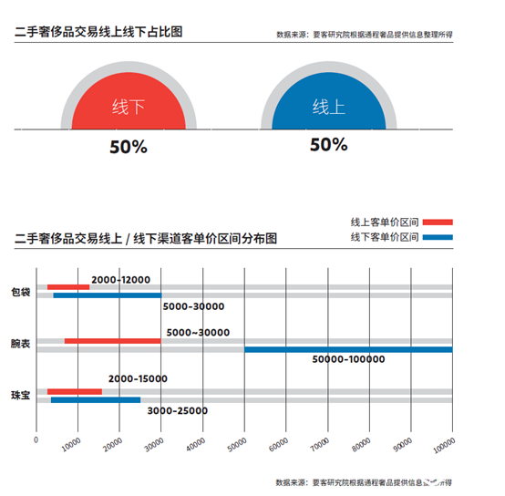 二手奢侈品在线上天然具有聚合分散市场、调度货源的优势,线上的发育度优于线下,目前中国二手奢侈品市场线上渗透率已经达到50%,远远高于一手市场17%的线上渗透率。30000元客单价是分水岭,30000元以下可以在线上线下同步发展,30000元以上只能通过体验感更强的线下渠道售卖。