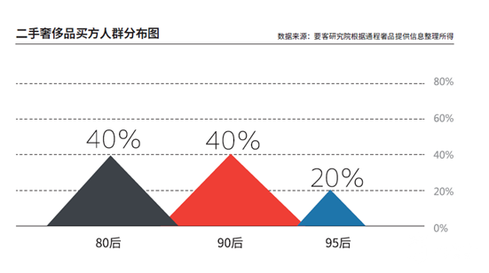 75%的二手奢侈品卖方是30-50岁群体,20%是财富群体(拥有可投净资产超千万),5%是其他群体。二手奢侈品买方群体按年龄分布:40%80后、40%90后、20%95后。80后群体收入较为稳定,但家庭经济负担重,职场需要购入较多的奢侈品;90后消费群体出于对审美、时尚和品味的追求,收入能力有限,退而求其次成为二手消费群体;这两部分群体是最为活跃的二手奢侈品买方群体。