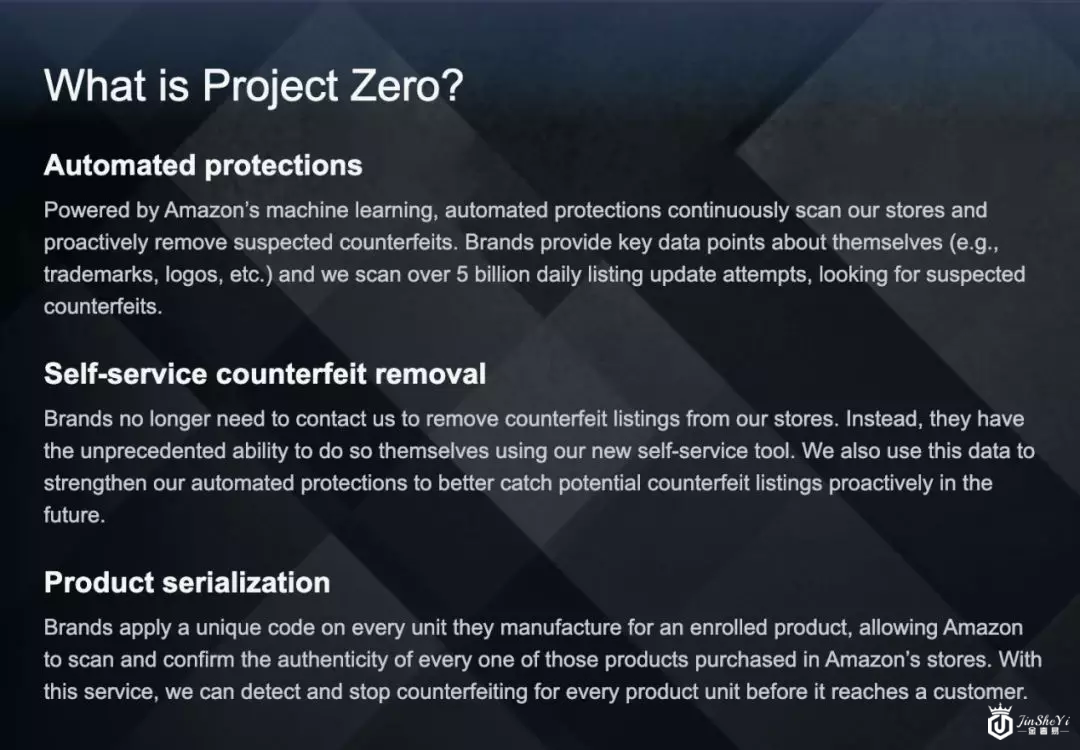 而Project Zero则是授予了官方品牌更多权力,不必等亚马逊受理就可以将第三方卖的假冒伪劣产品移除平台。