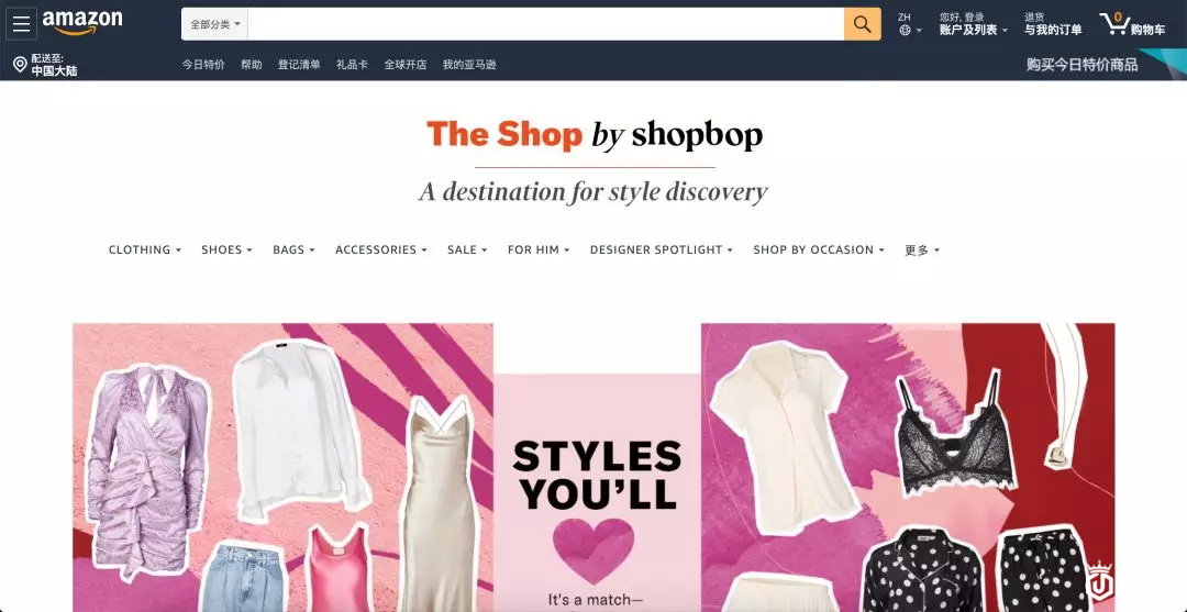 亚马逊网站上的Shopbop店铺门面