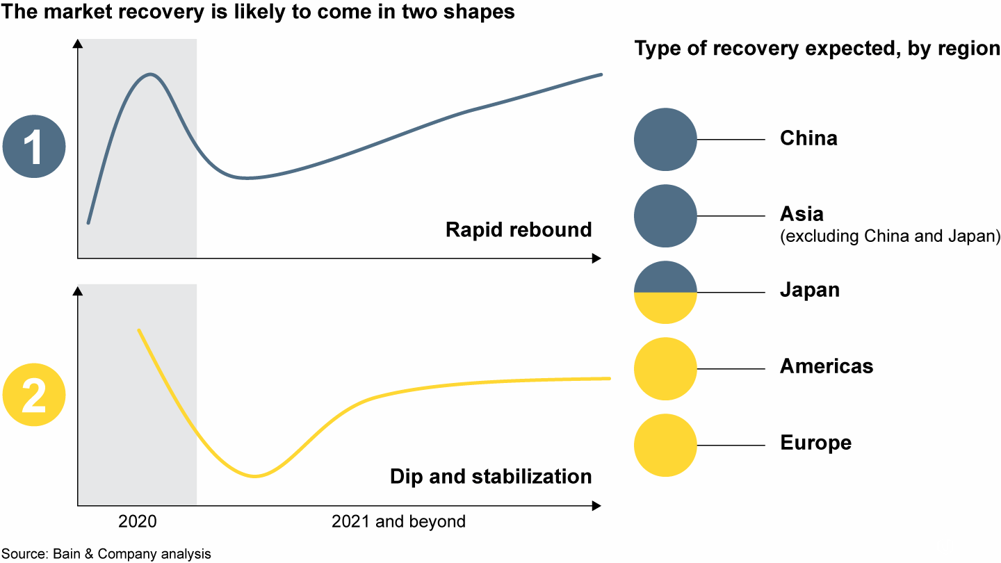 第一档预测是假设市场需求在下半年逐步回升,从而将2020年整体市场萎缩幅度限制在15%~18%。