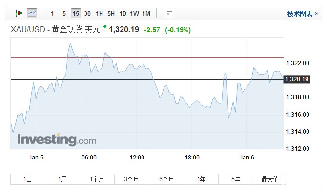 截止北京时间4:10,现货金下跌0.19%,报每盎司1,320.19美元,离开了周四高位1,325.86美元,但本周周线上涨1.3%。