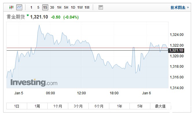 截止收盘,美国2月期金收涨0 .70美元,或0.05%,报每盎司1,322.30美元。