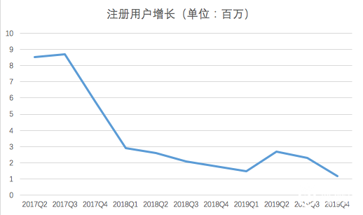 (图为2017Q2-2019Q4趣店注册用户增长情况)