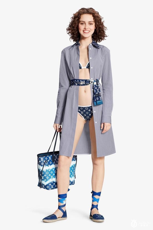 除此之外,从帽子、泳衣到睡衣,以深蓝色Monogram为主调的衣着散发青春气息,休闲舒适。