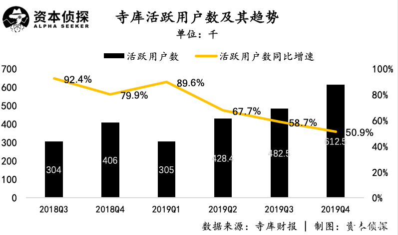 作为垂直领域的玩家,寺库首要的问题在于如何面对综合电商巨头入场抢生意。综合电商的优势在于流量,而寺库2019年第四季度的活跃用户数为61.25万人,体量不及巨头,增速还呈持续放缓的趋势。