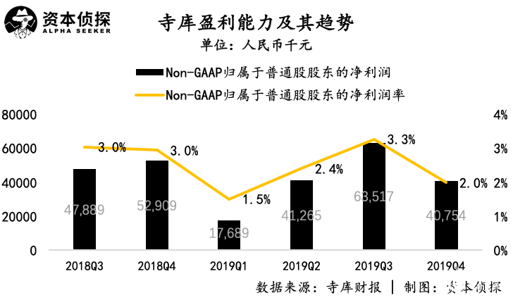 在净利润方面,寺库四季度在非通用准则下归属于普通股股东的净利润为4075万元,同比下跌23%;非通用准则下的净利润率为2%,上年同期和上一季度分别为3%和3.3%。
