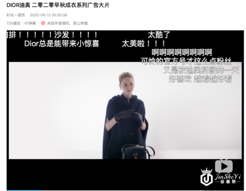 6月12日16点35分,DIOR悄无声息地在B站发布了一则视频:2020早秋成衣系列广告大片,由迪奥灵感缪斯詹妮弗·劳伦斯演绎。