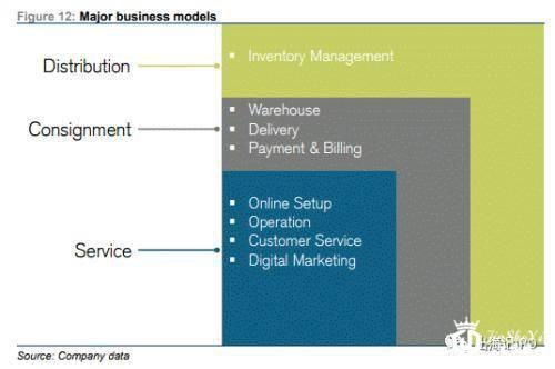 宝尊从“基于分销”的模式开始,从其合作伙伴出选择并购买商品,随后通过官方品牌商店或其自身直接向消费者出售。同时宝尊也从重资产模式转向轻资产的“非分配”模式,除了提供IT解决方案,网店运营、数字营销、客户服务等电子商务服务的收入模式外,还提供寄售模式,仓储和配送服务。