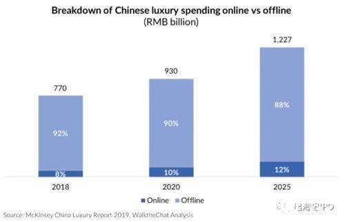 同时市场预期,当下仅占中国奢侈品消费总额10%的网上销售,到2025年将增长至12%以上。而这说明,中国奢侈品电商市场将从2020年的930亿增长至2025年的1470亿元人民币,五年复合年增长率为9.6%,远高于中国奢侈品市场同期增长。