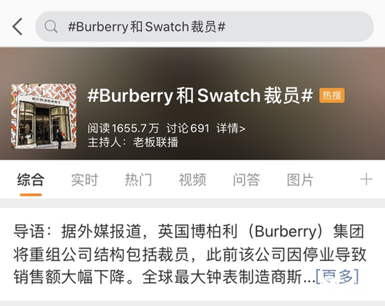 7月15日,据彭博社报道,英国Burberry集团将重组公司结构,预计全球裁员500人,此前该公司因停业导致销售额大幅下降。另外,全球最大钟表制造商斯沃琪(Swatch)集团宣布裁员2400人,裁员人数创历史新高,并削减了门店数量。