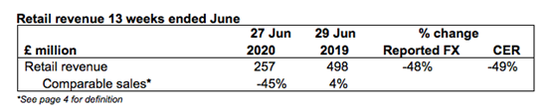 Burberry首席执行官Marco Gobbetti在报告中表示:“随着商店重新开业,情况逐月好转。一季度销售额下降了45%,6月份下降到-20%,而中国大陆和韩国6月份的增长超过了COVID-19之前的水平。”