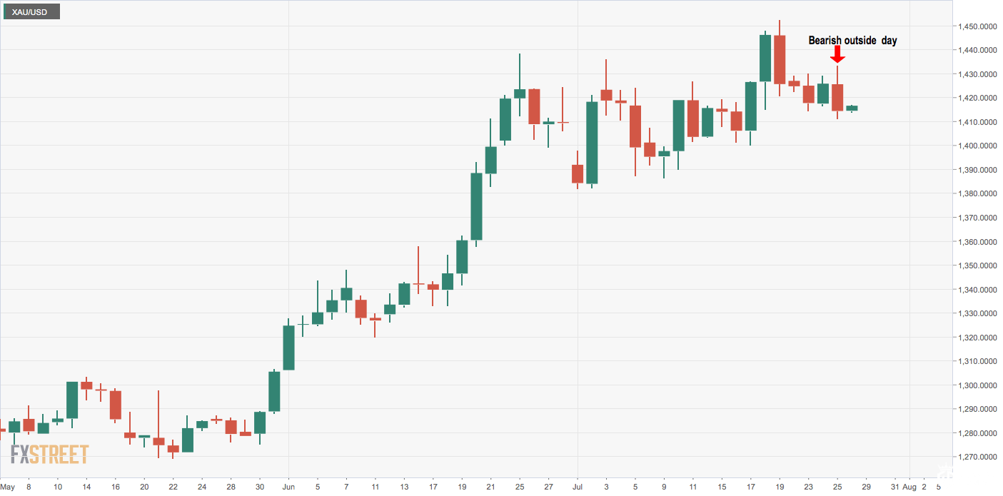 知名国外财经网站FXStreet的分析师Omkar Godbole认为,金价有跌至50日移动均线支撑位的风险,该支撑位目前在1406美元左右,周四金价形成了看跌的K线。当一天内的价格以乐观的基调开始,以悲观的情绪结束时,就会出现看跌行情,吞没前一天的价格走势。