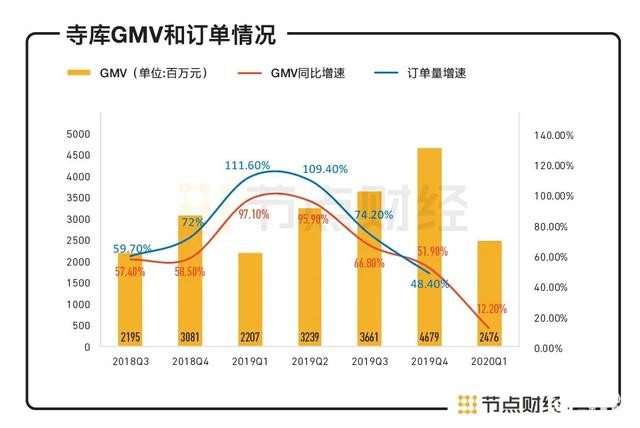 2020第一季度,寺库的订单总数为72.3万,同比增长11.6%,远低于2018年和2019年超60%的季度增速。