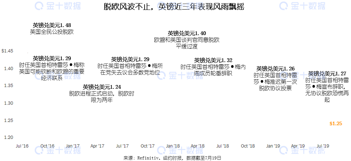 无论是候选人约翰逊和还是亨特当选新一任首相,都无法避免英国脱欧给英镑带来的风险。