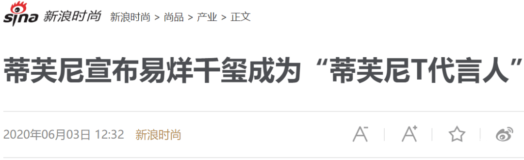 今年6月,蒂芙尼宣布易烊千玺成为代言人