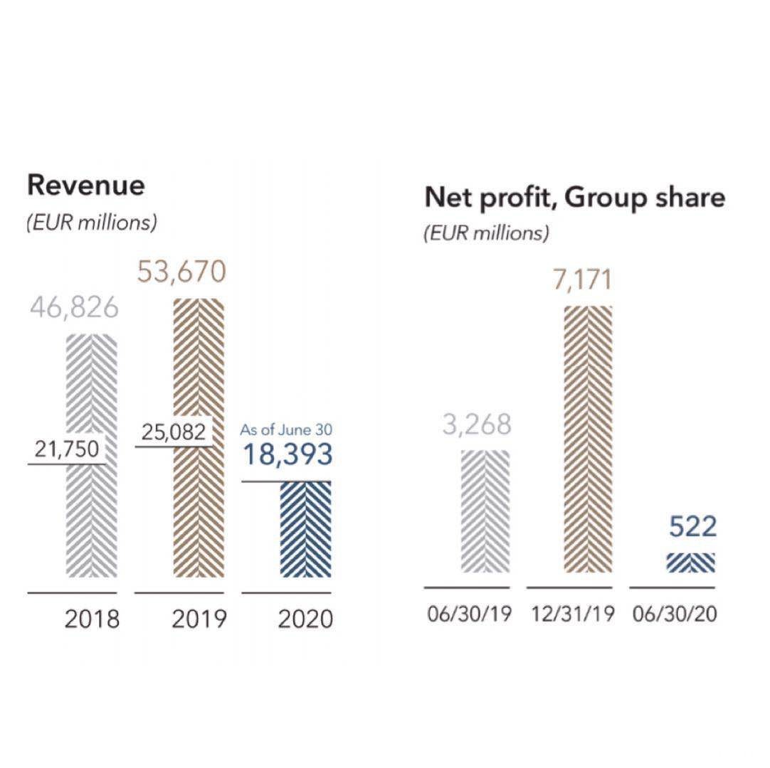 在截至6月30日的第二季度内,全球最大奢侈品集团、路易威登品牌母公司LVMH集团营收同比下跌28%至183.93欧元,净利润同比(较上年同期)暴跌84%至5.22亿欧元。LVMH集团分析称,营收大跌主要受到新冠疫情的持续影响,包括旗下门店在大多数国家关店长达数月,生产设施在多数国家也遭遇停摆,国际旅游也遭遇大范围阻断。