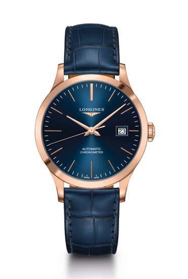 浪琴表在开创者系列中运用了单晶硅游丝,极大提升了腕表的防磁和抗震效果,使腕表更加精准可靠,该系列腕表全部通过瑞士天文台认证(COSC)。玫瑰金表壳与深蓝色鳄鱼皮表带和谐相映,太阳纹表盘在阳光照射下散发迷人的光彩。