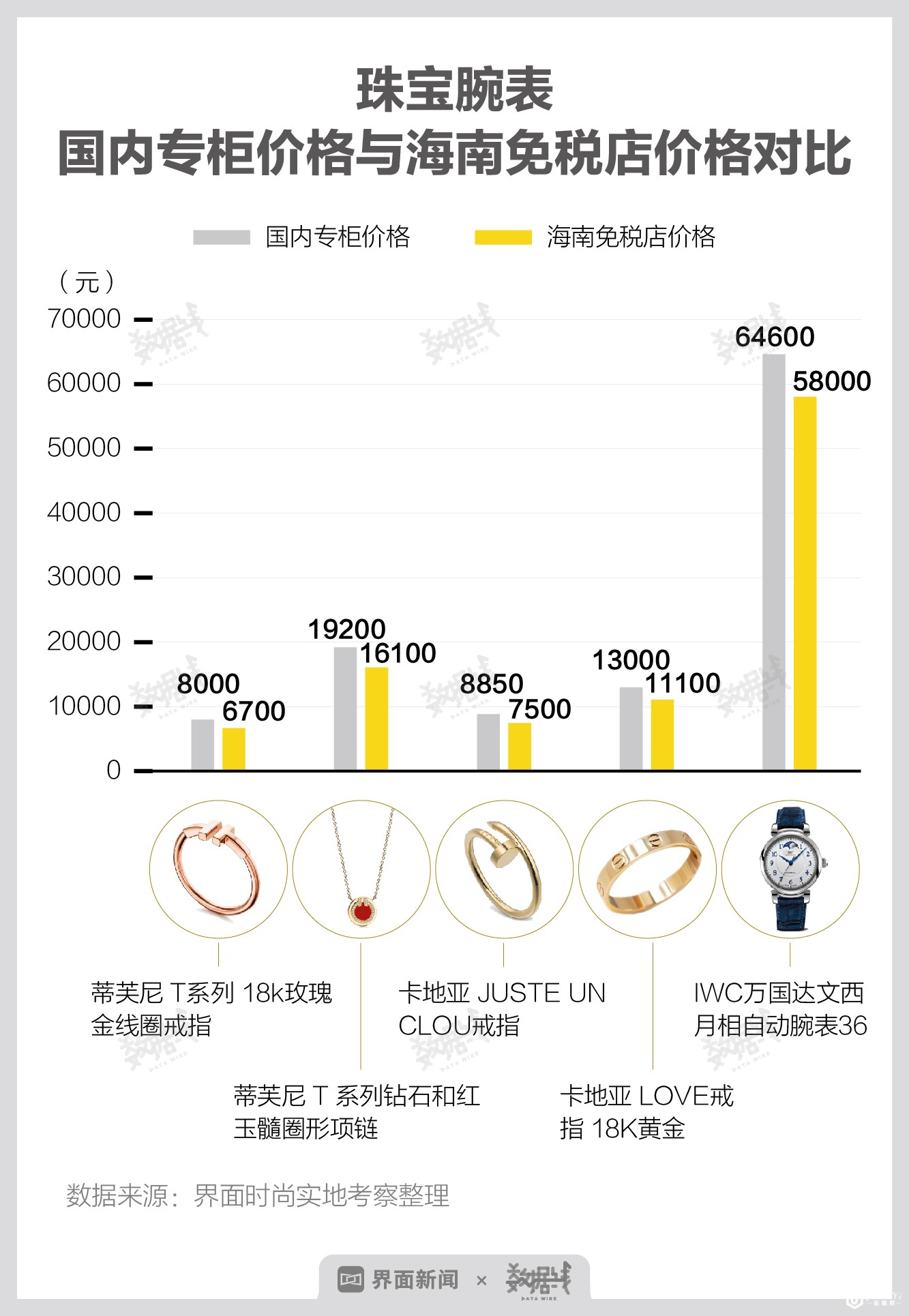 对于消费者来说,价格是免税品的最大优势。当免税购物额度从3万元提升到10万元之后,游客放开了手脚,可以更没有负担地考虑单价高的珠宝、腕表产品。离岛免税商品增加的7个新品类包括酒类和电子产品,优惠力度都很大。