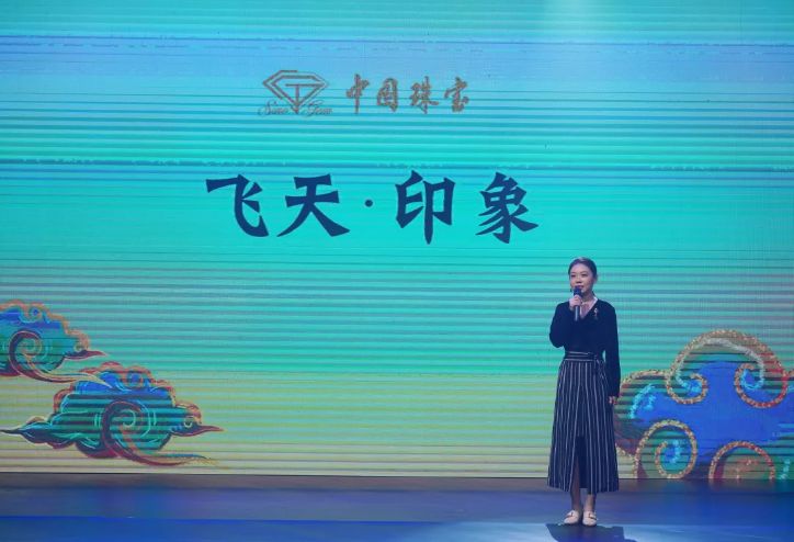 “中国珠宝”品牌形象大使梅婷女士佩戴《飞天·印象》系列首饰惊艳亮相发布会,表达了对所佩戴敦煌主题首饰的喜欢以及对“中国珠宝”品牌所打造的文化珠宝的喜爱。