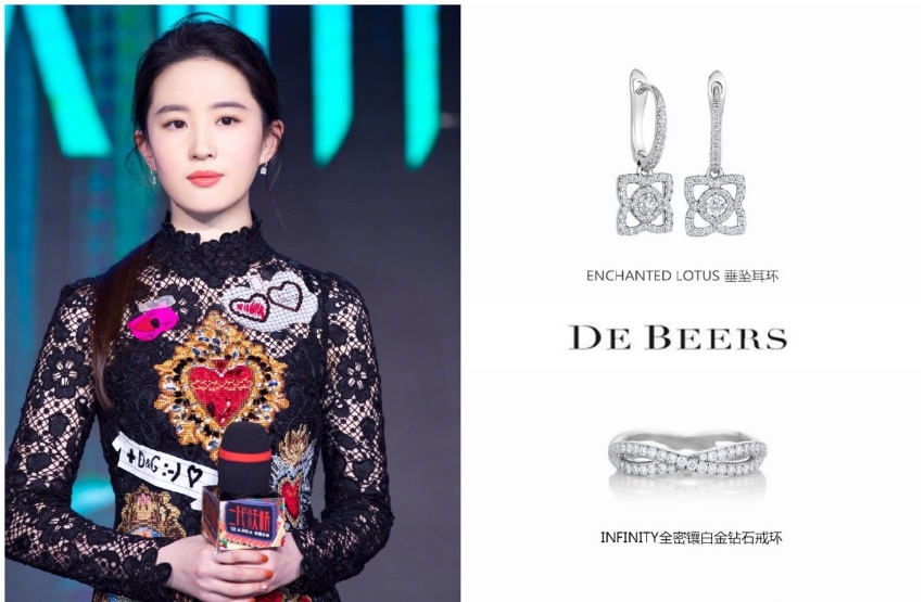 2017年6月,刘亦菲以DE BEERS珠宝作品相伴出席电影《二代妖精》发布会