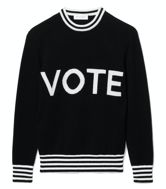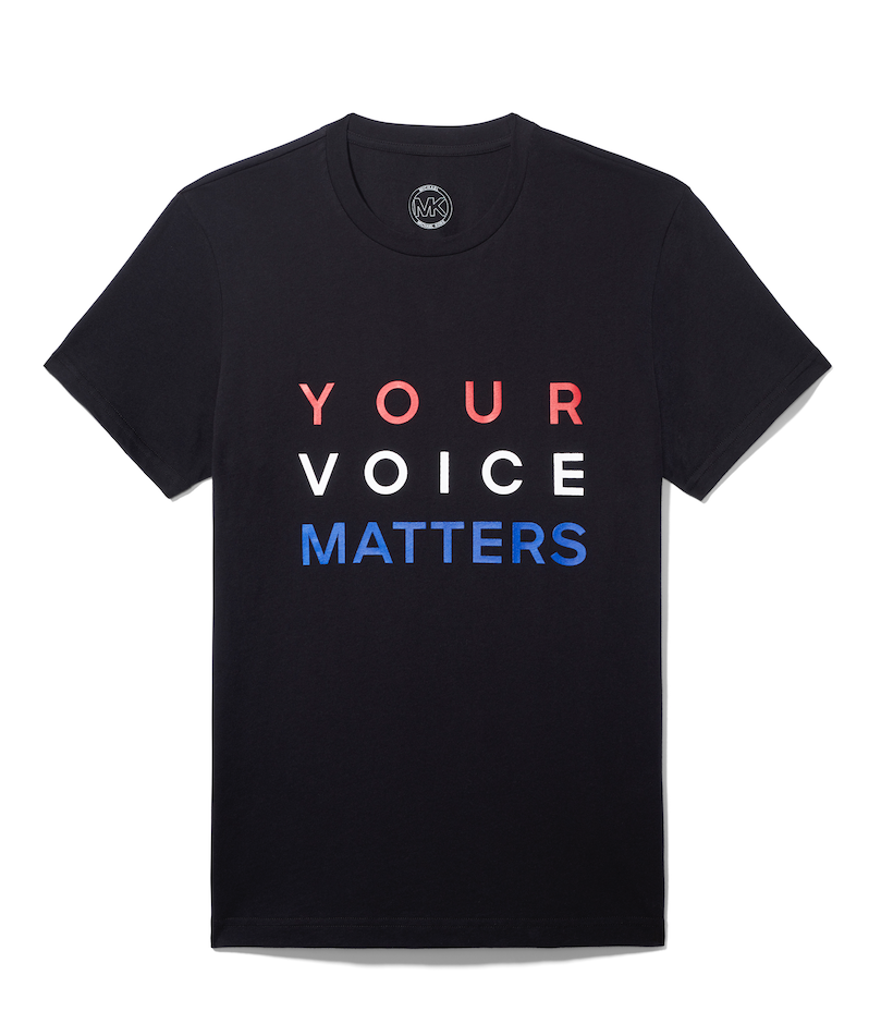 Michael Kors 表示,“我们最大的权利和特权就是让别人听到我们的声音,投票是确保你的声音不会消失的最佳方式。这些 T 恤和毛衣提醒所有美国人去投票,不要让他们的声音消失。这也是一个为法律和社会正义筹集资金的重要机会。”